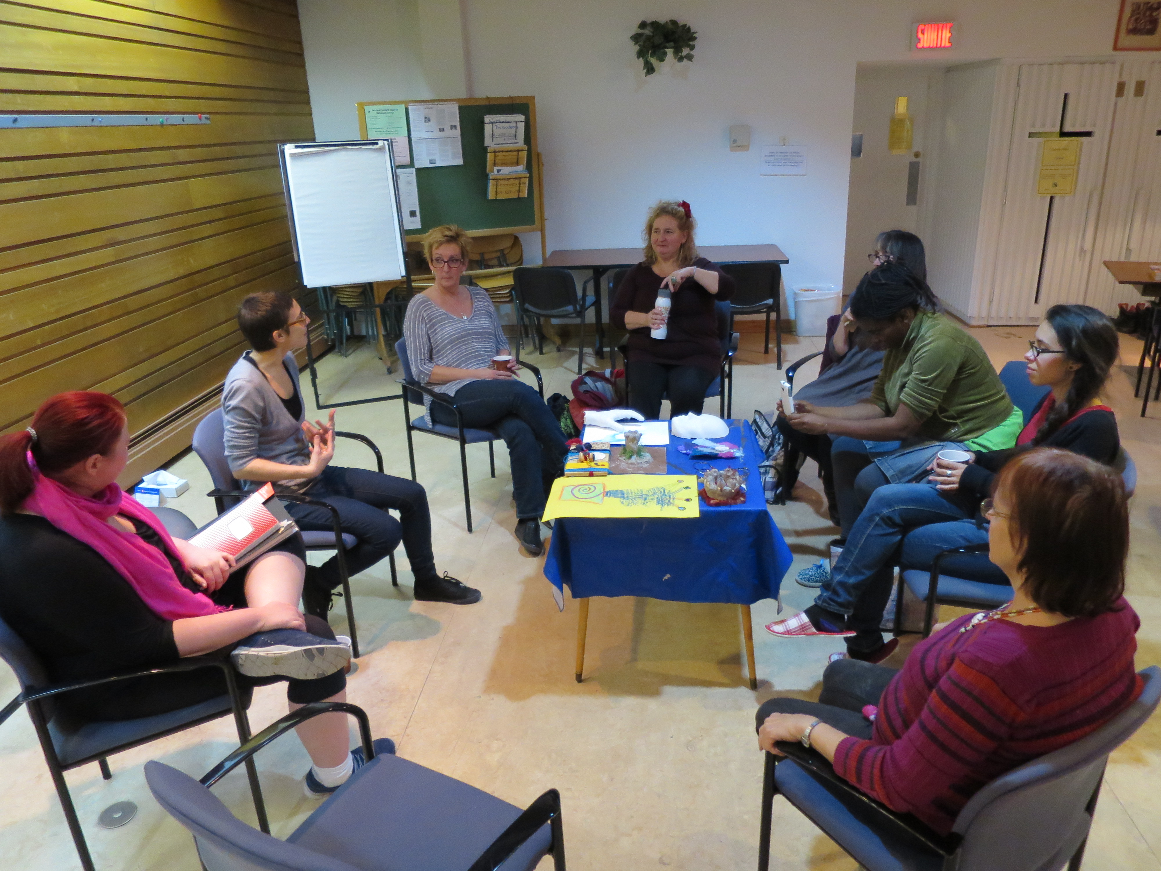 Quelle magnifique soirée vécue dans la créativité à la maison de transition Thérèse Casgrain! Bonne humeur et profondeur étaient au rendez-vous de cette rencontre entre femmes qu’elles aient commis ou subi des crimes, ou qu’elles soient tout simplement ouvertes à la rencontre créative, au-delà des préjugés.